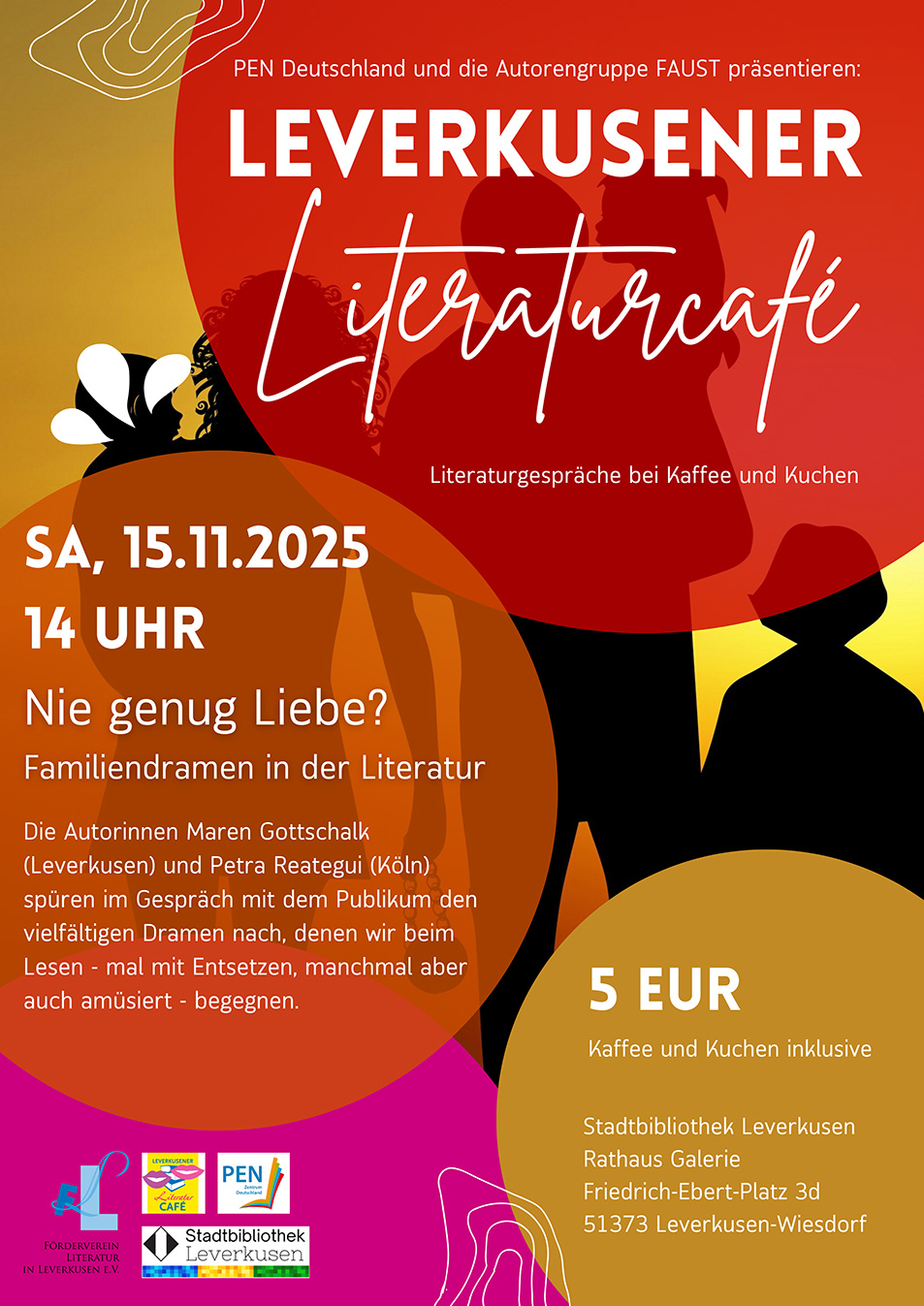 PEN Deutschland und die Autorengruppe FAUST in Zusammenarbeit mit der Stadtbibliothek Leverkusen und dem Förderverein Literatur in Leverkusen e.V. freuen sich, Sie zum nächsten LiteraturCafé einzuladen.